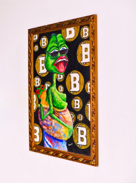 Pepe Bitcoin painting involves creating art on physical canvas using traditional painting techniques, but with an added layer of digital artistry. Using a rare style, Isaac incorporates elements of cryptocurrency and digital art into their traditional paintings, creating one-of-a-kind pieces that blur the line between physical and digital art.