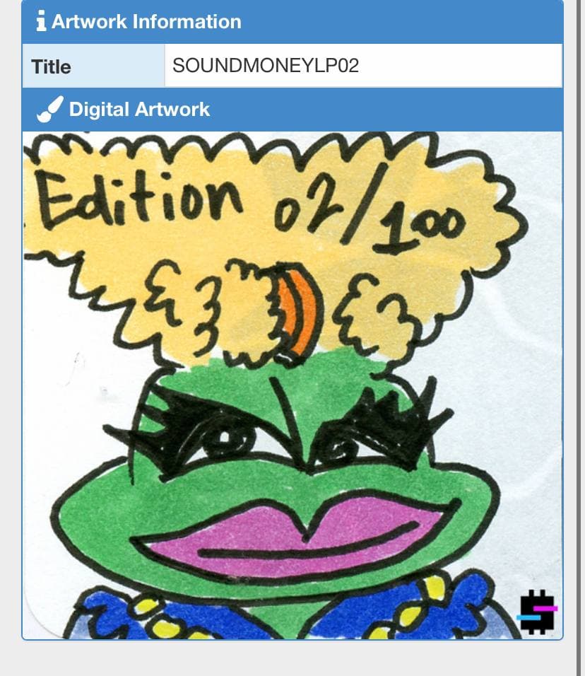 The Sound Money LP, available exclusively through Scarce.City is a limited edition vinyl record focused on bitcoin culture. The songs are a combination of high production samples and lyrical raps that take the listener on a trip down the bitcoin rabbit hole if they listen closely. The first 21 of 100 total copies are signed, hand numbered, and come with a 1 of 1 NFT displaying the edition number and unique Pepe drawing. The NFT will be issued from DJPEPE Counterparty asset and appear as DJPEPE.SOUNDMONEYLP01-21. Each album includes a high quality digital album download as well.