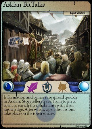 Information and rumors are spread quickly in Askian. Storytellers travel from town to town to enrich the inhabitants with their knowledge. After that, open discussions take place on the town square.