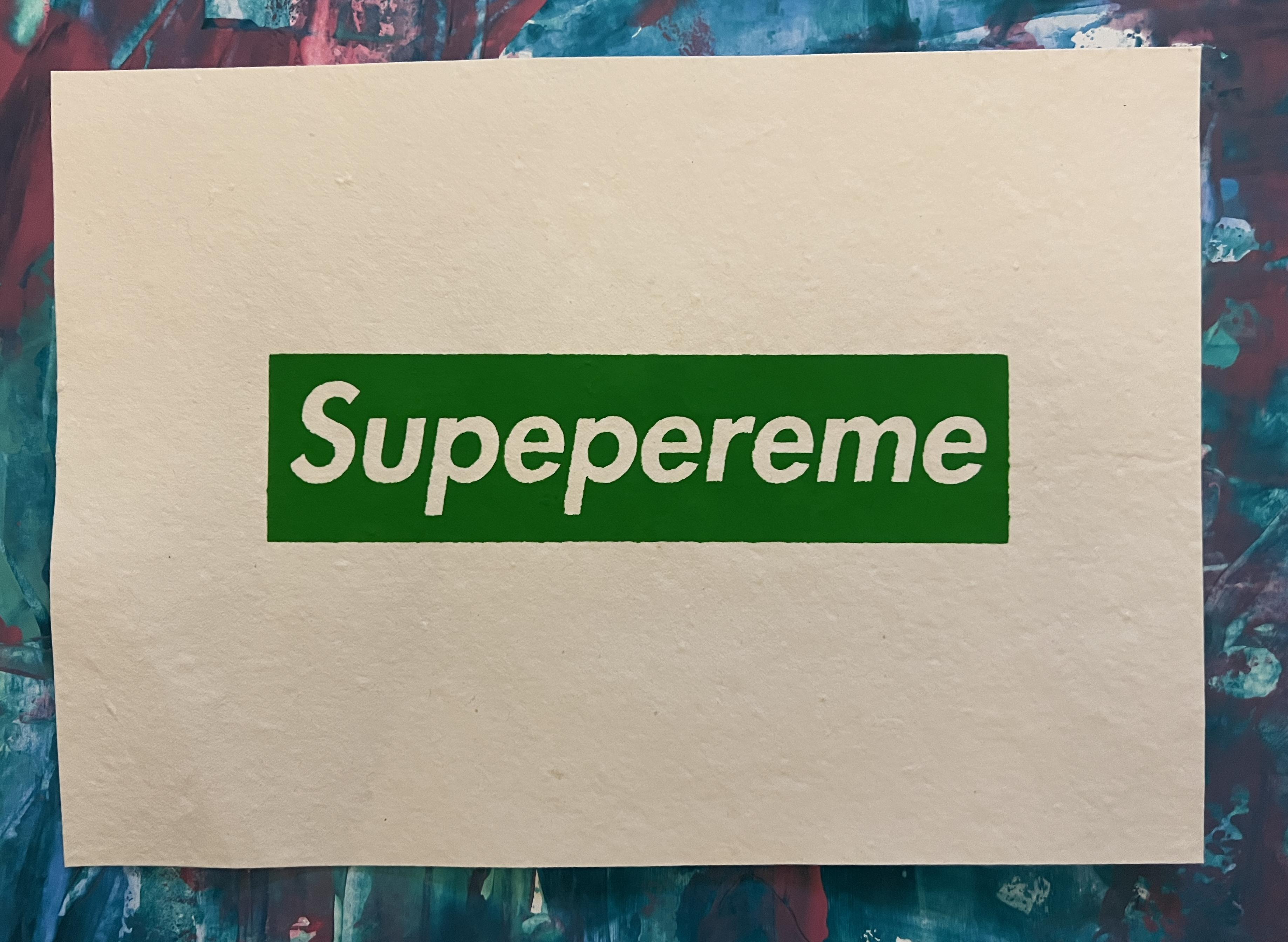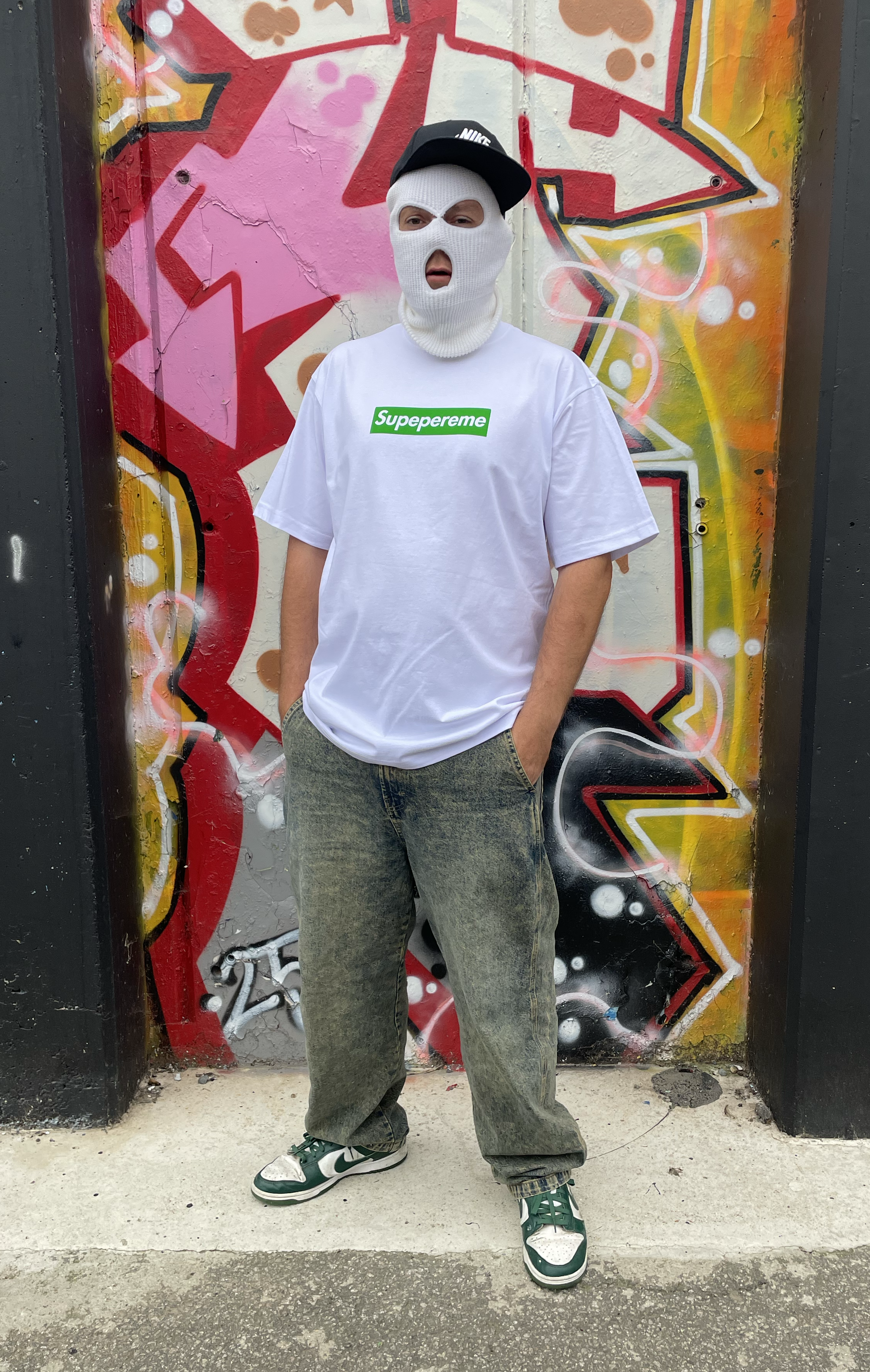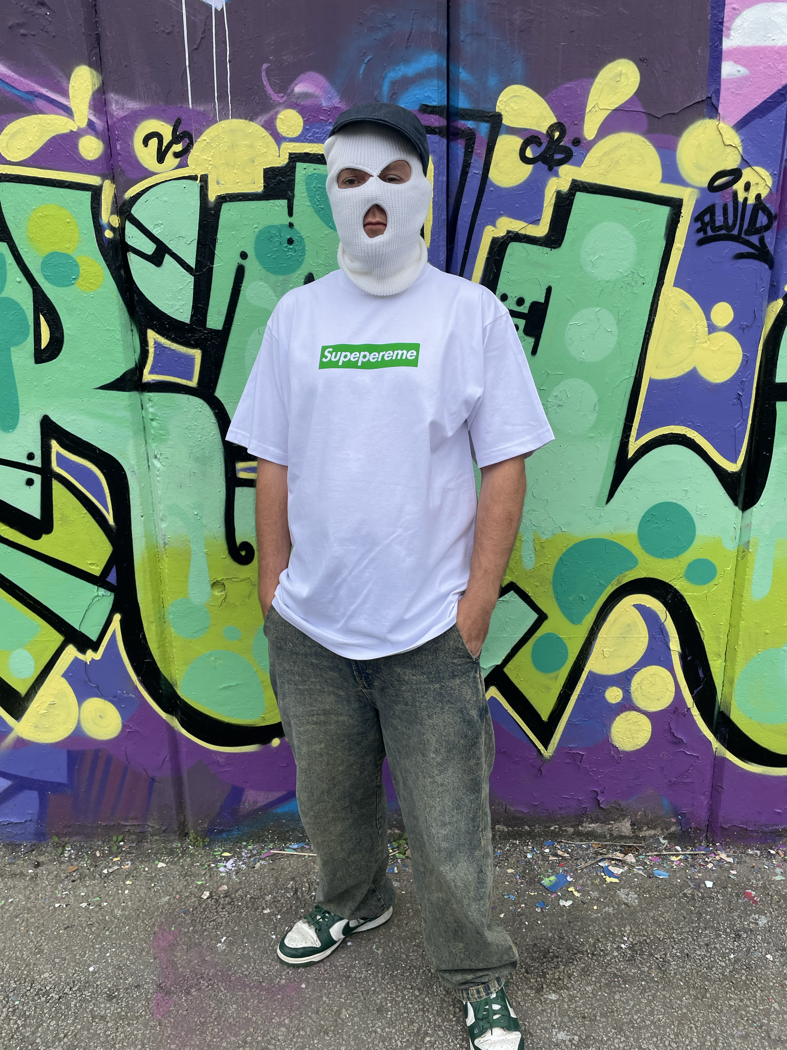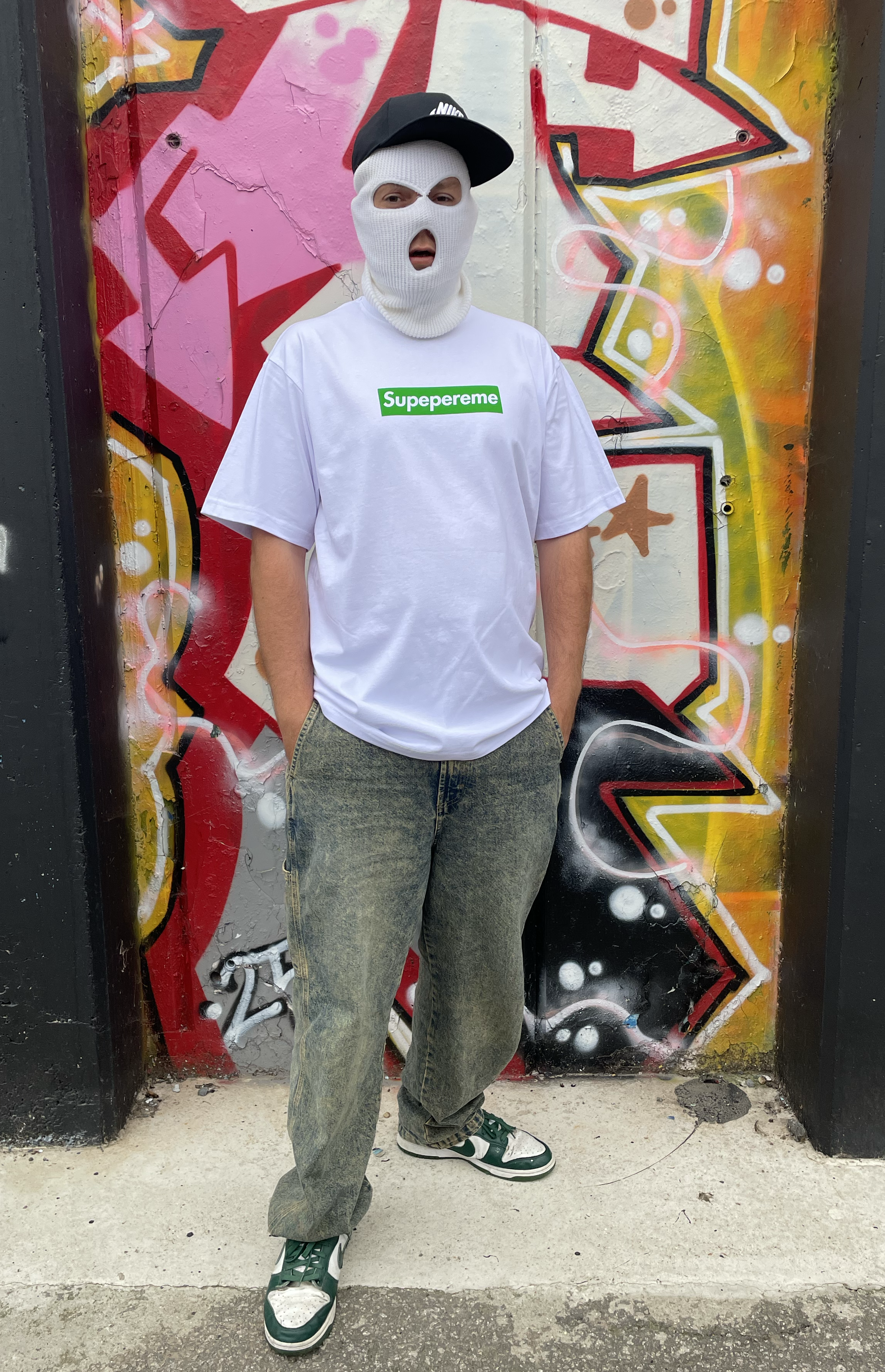 This one colour T-shirt print features the “Supepereme” Design, a play/parody on the supreme box logo in bright froggy green and is hand numbered. Adorn yourself in scarce memetic prowess with this look-twice design, A rare fusion of internet culture, Bitcoin ethos, and streetwear legacy - A playful twist on streetwear culture, this shirt reimagines the iconic supreme box logo tee with a memetic edge – it proudly declares “Supepereme” – a nod to the internet’s most powerful cultural force: memes and more importantly pepe. It pays homage to one of the most iconic designs in streetwear history, reinterpreted through the lens of memetics: an unstoppable cultural wave, much like bitcoin.