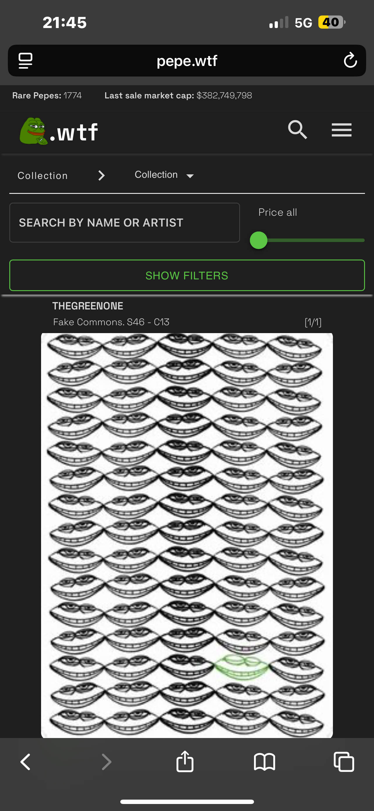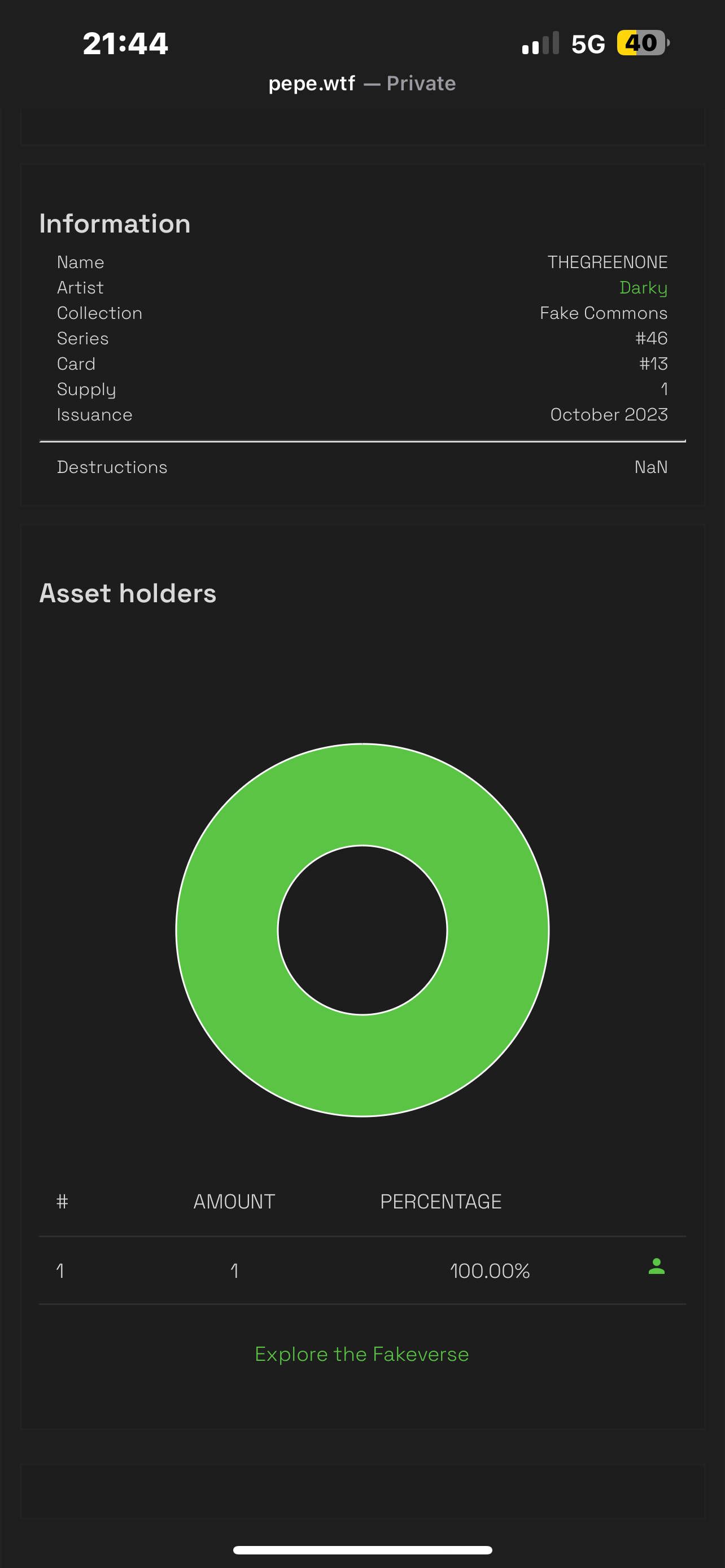 THE GREEN ONE is unique within the FAKE RARES lore. The card is one of only a handful within the entire collection with a total supply of only 1 (ONE)