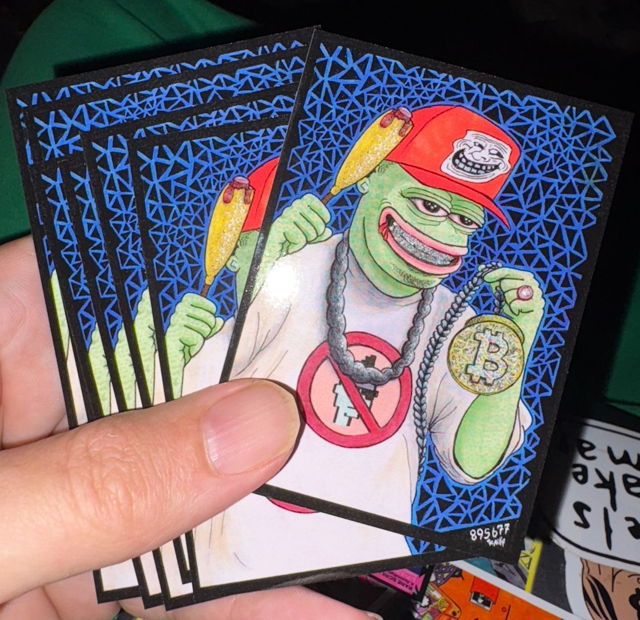 Who wants to flex an iced out Pepe? Paul Wall inspired Bitocin and Pepe art with a touch of trolling. Mounted on vinyl record jacket and framed. Signed with the block Height 895677.