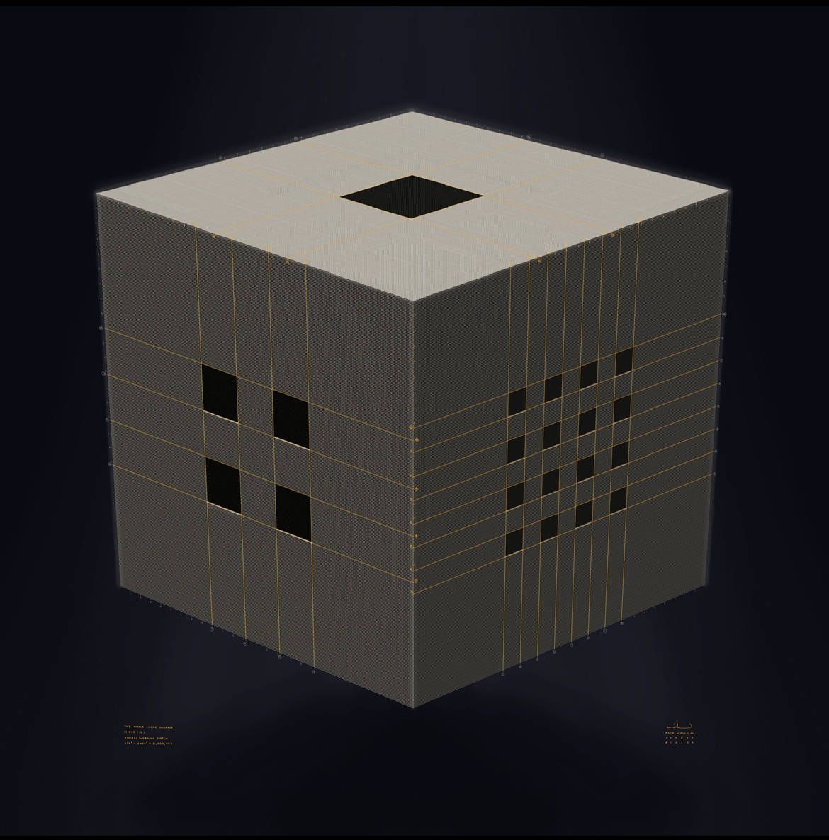 Possibly the most literal depiction of Bitcoin created - a cube containing exactly 21 million spheres, revealing an astonishing hidden mathematical elegance that both encapsulates the halving process and exponential growth, all within the strict confines the solid cube. Two images showing three sides each.