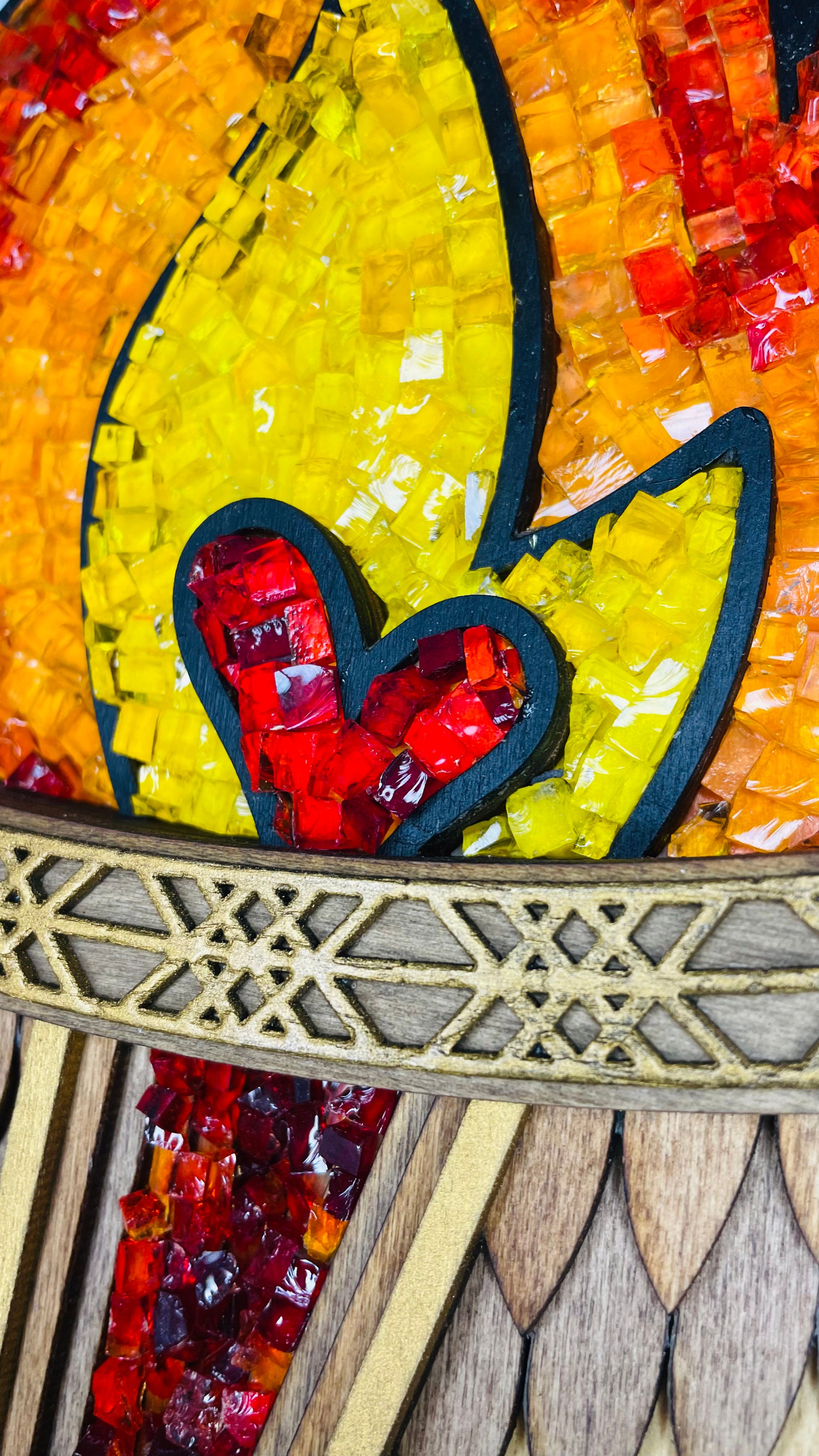 The pattern on the band around the top of the torch is the repeating symbol that represents the Web of Wyrd.