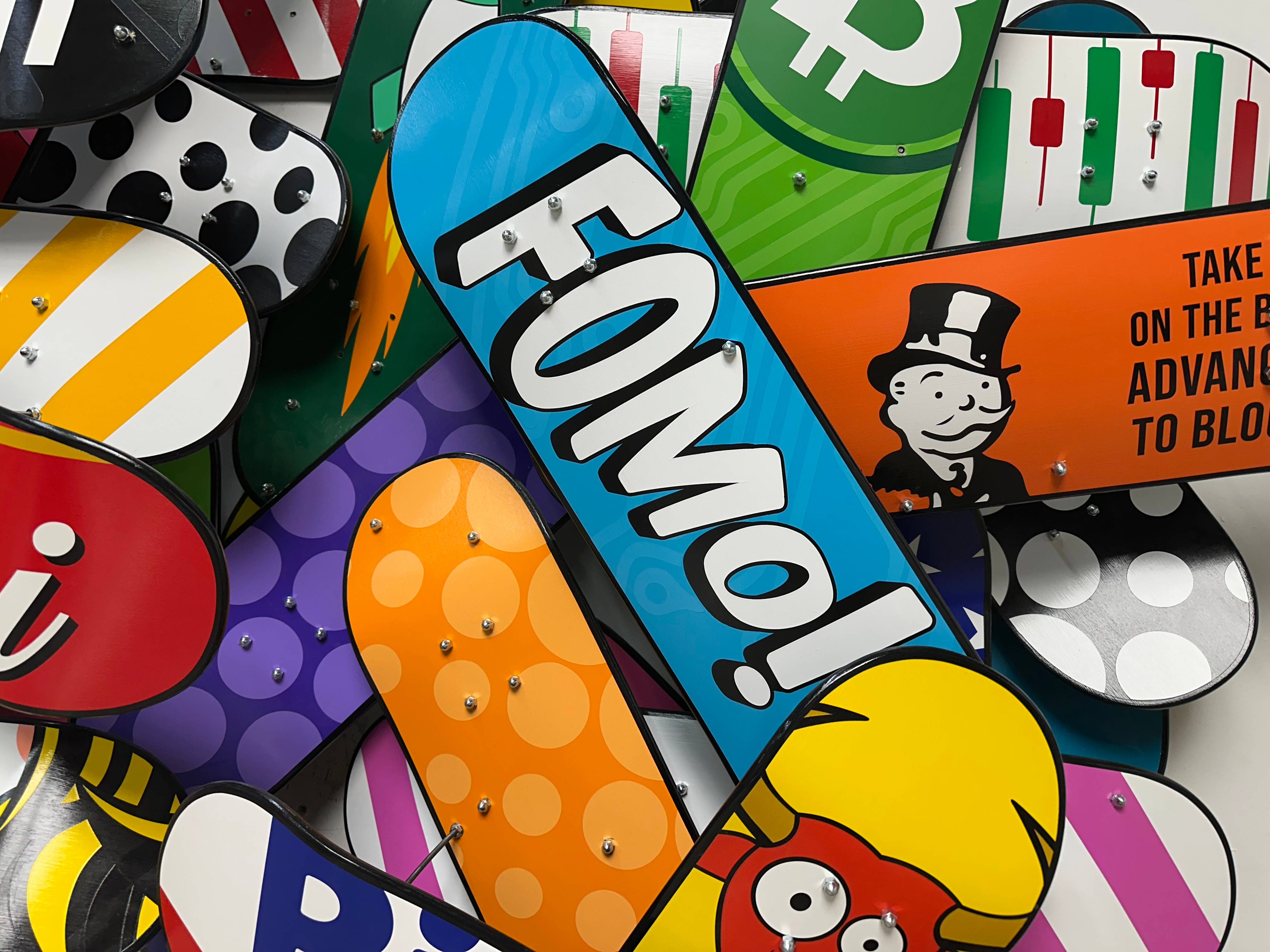 Bitcoin inspired skateboard wall sculpture. Gallery retail value of $28000.