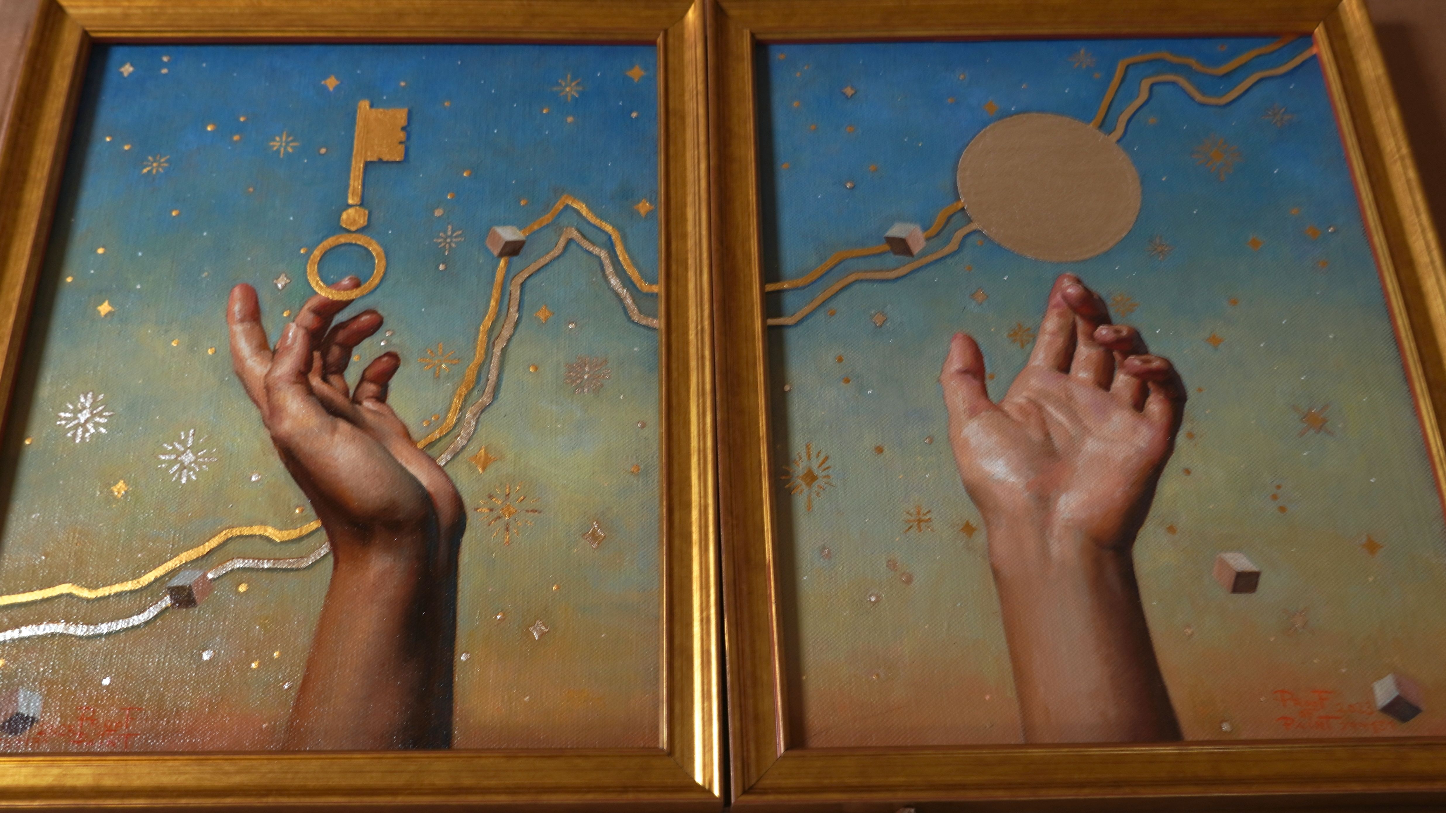 The paintings works both solo as well as paired in diptych.
