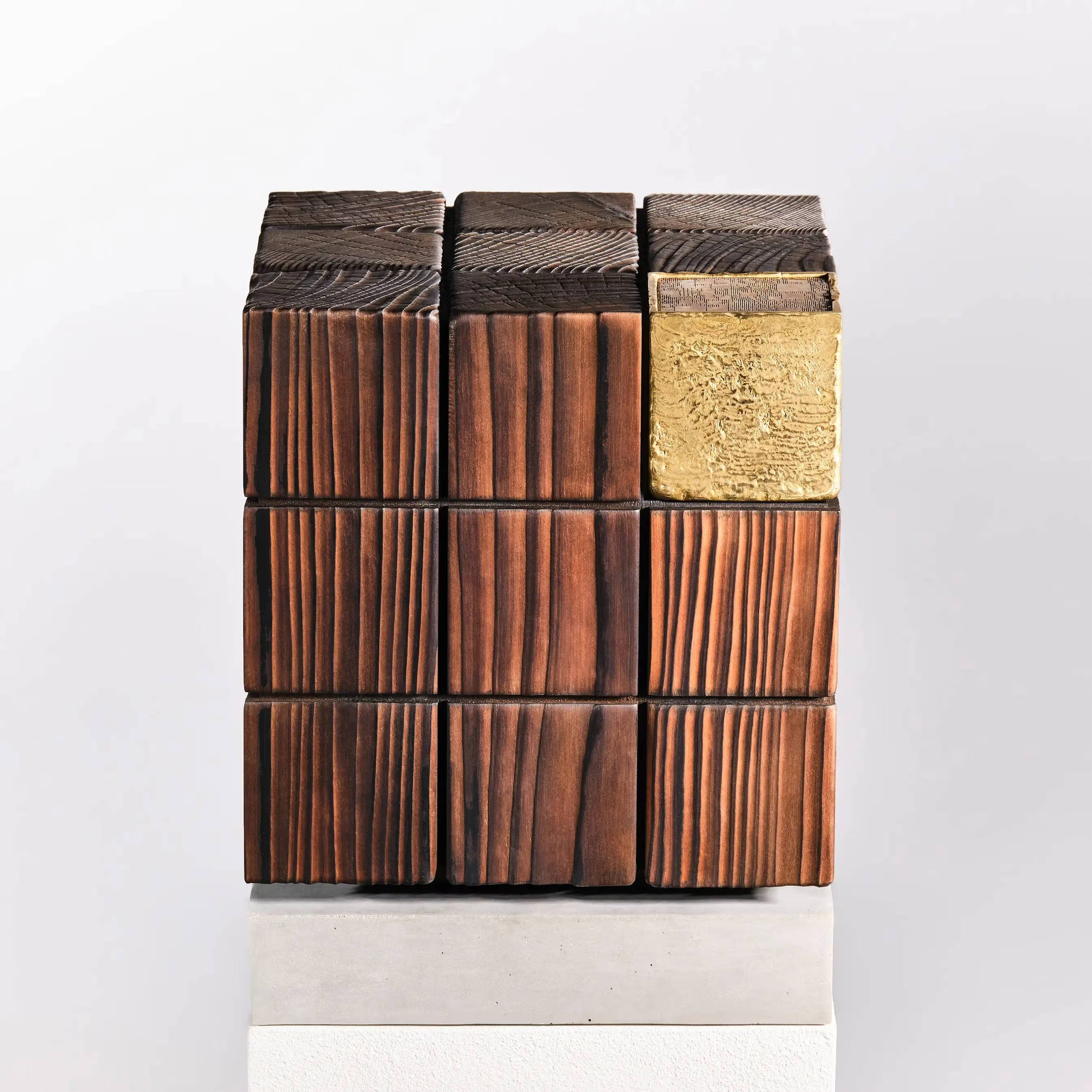 25 blocks are carved from solid, noble wood. They represent the countless anonymous blocks that make up the chain — uncelebrated, yet essential. Their accentuated grain reflects the passage of time and the logic of Proof of Work: visible, unforgeable, earned. Like Bitcoin, where tick tock – next block reflects the protocol’s average 10-minute rhythm, each tree adds a single growth ring per year — a natural clock, equally verifiable and impossible to fake. Both systems are built on time, work, and integrity.