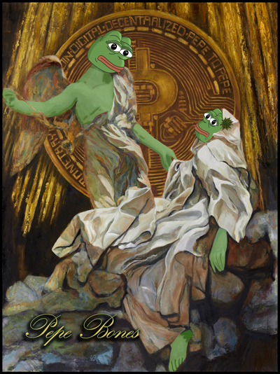 Rarely taking life too seriously I created my Pepes with parody and satire in mind, starting with the now famous Trevor Jones "Bitcoin Angel". From there I crossed over my favourite characters, the Spies, and launched into a wild series of Pepe creation that has resulted in what you see here today. It's been a blast making them and I hope the winning bidder enjoys them as much as I did making them. There will be many more to come.