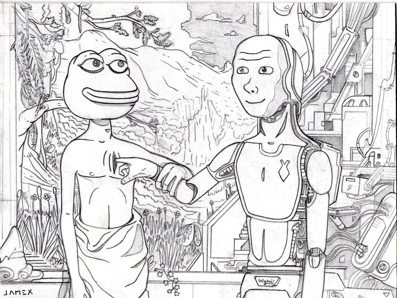 The original Sketch for the Welcome Pepe and Welcome Wojak art that was part of giveaways drops by Pepe.wtf