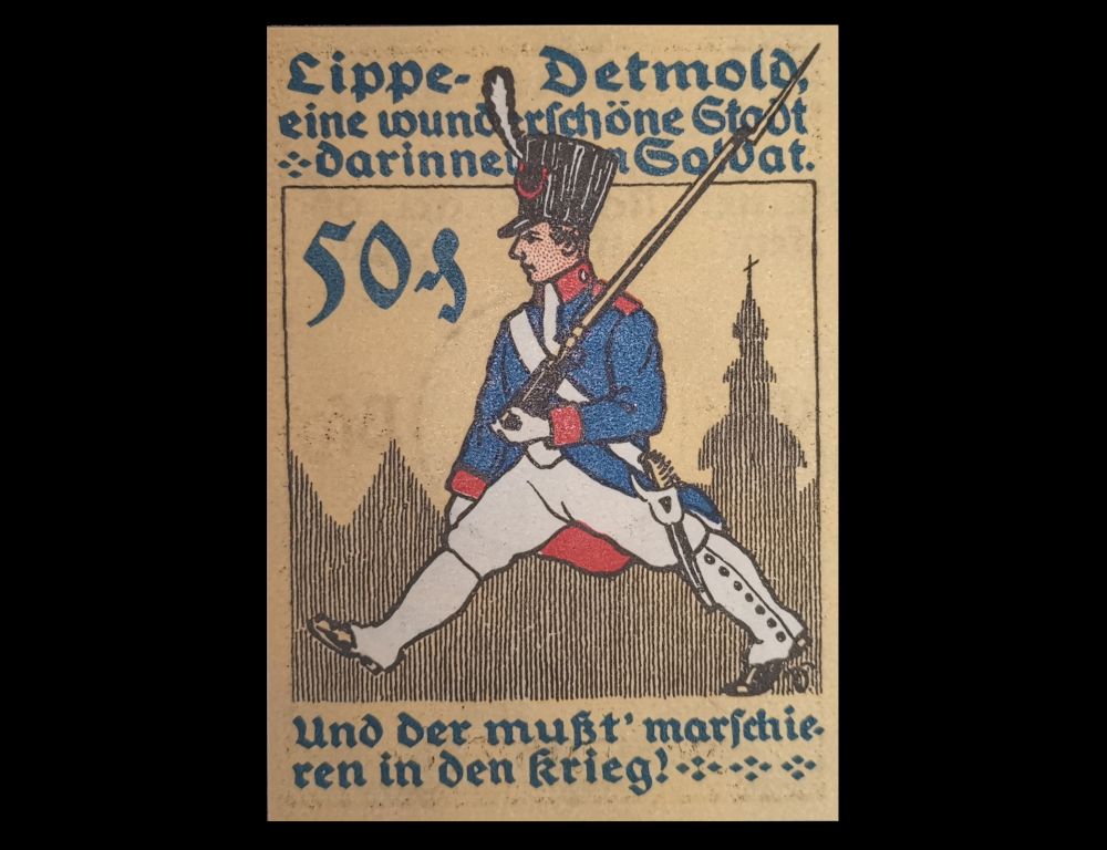 argument. Notgeld with the marching solder issued by Lippe-Detmold and notgeld with the old market square of Braunschweig have only common denomination. They are much informal, even satirical.