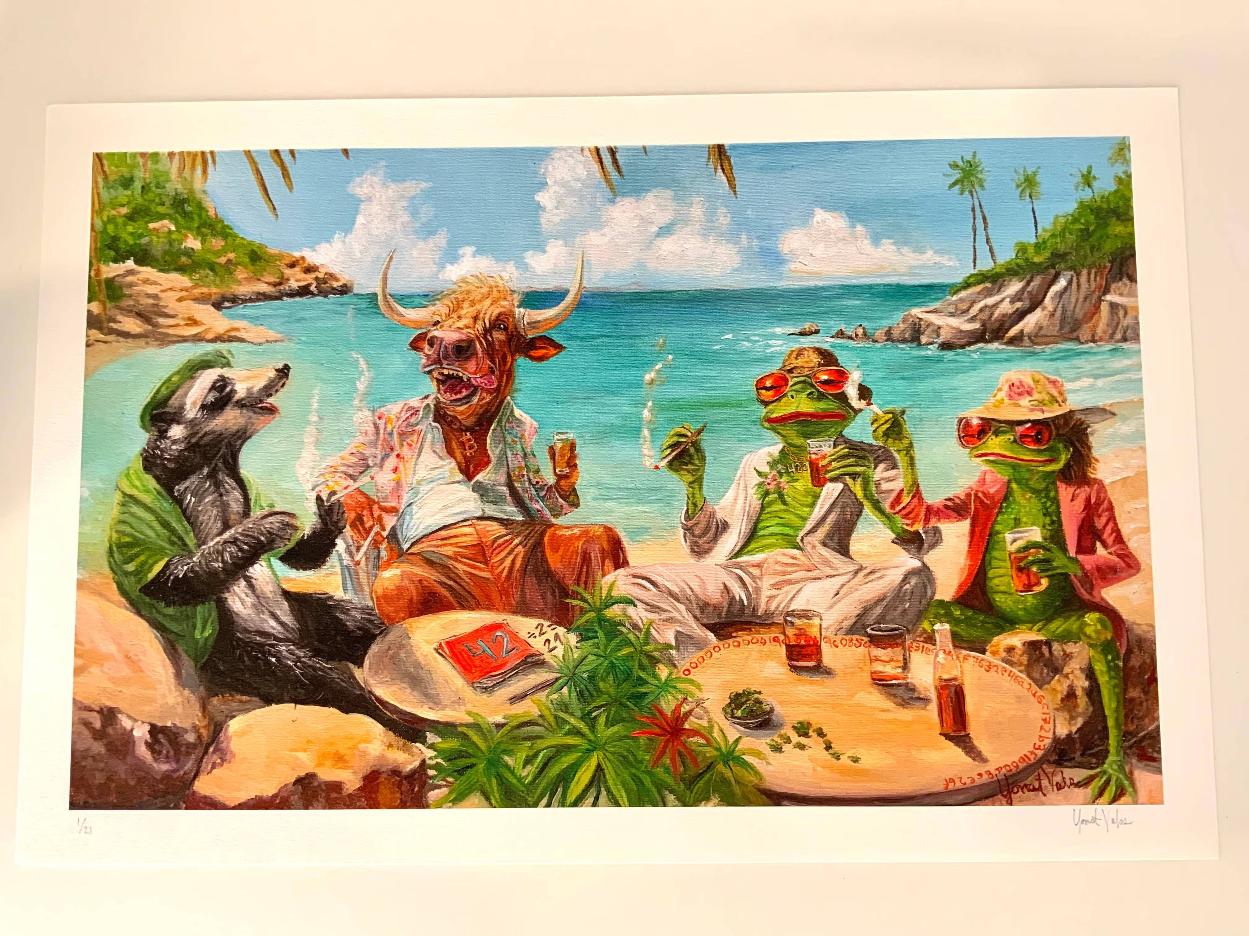 About the original artwork: The original artwork is an oil painting from the series ‘They say Bitcoin is a joke, but we’ll see who has the last laugh’. Each painting in this series is based on a known joke line, with recurring characters that always have the last laugh. Easter eggs are embedded in each one. Can you spot them? Thank you for your support and may you also always have the last laugh. You’ve earned it.