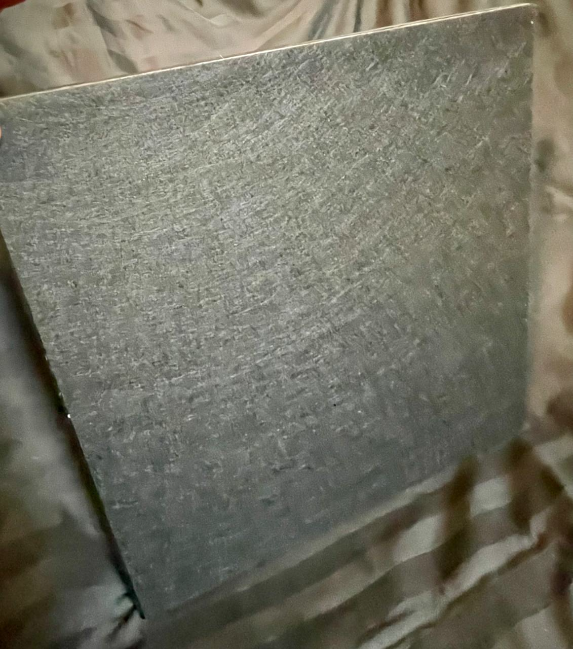 Cast in resin, it weighs an impressive 7.5 lbs, and measures 12” x 12”.