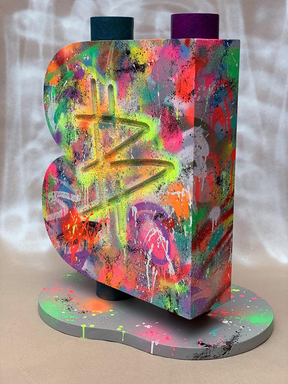 ZETRA’s first Bitcoin sculpture. Aerosol art meets 3DP Bitcoin.