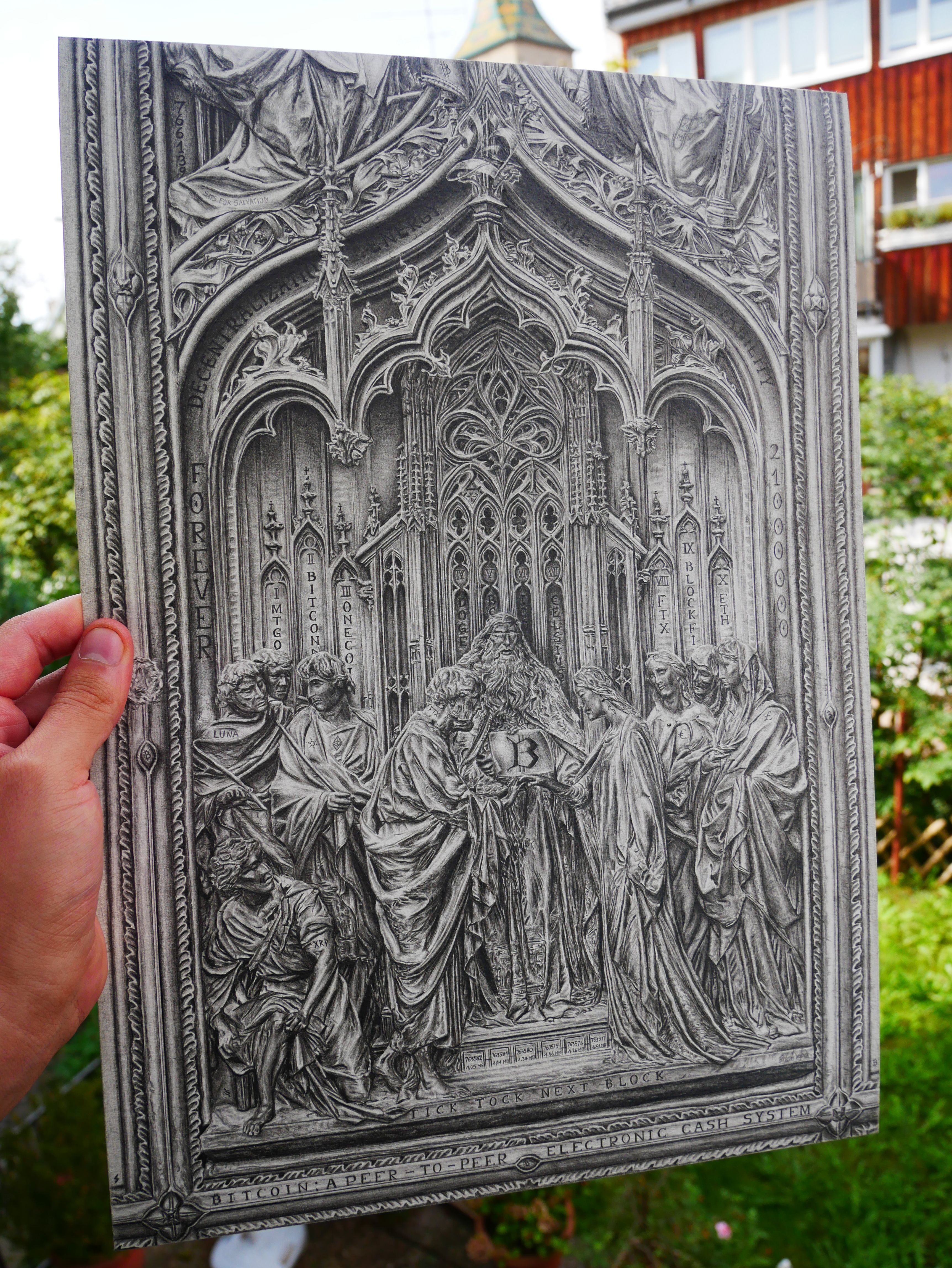 After drawing for an average of 7 hours over 26 days, I completed my drawing 'Bitcoin - Enlightenment' on block 766139. A few thoughts have flown through my mind in the course of this time that I would like to share: