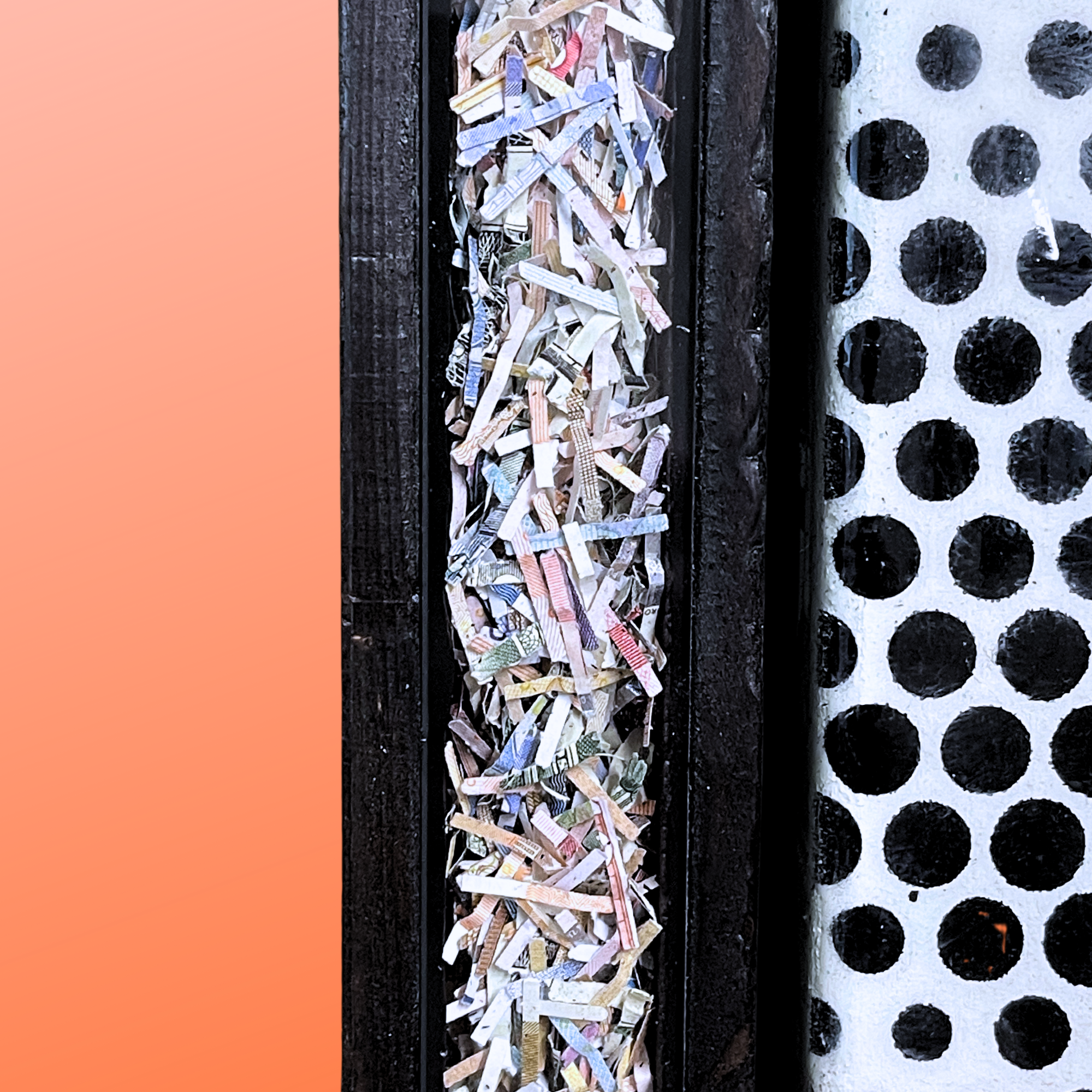 Thats why i used burnt Fiat banknotes ash, burnt the frames and stuffed them with shredded worthless Banknotes ($ and €). Its a practical metapher for „dirty“ fiat. So you will get your hands dirty . But thats the intention.