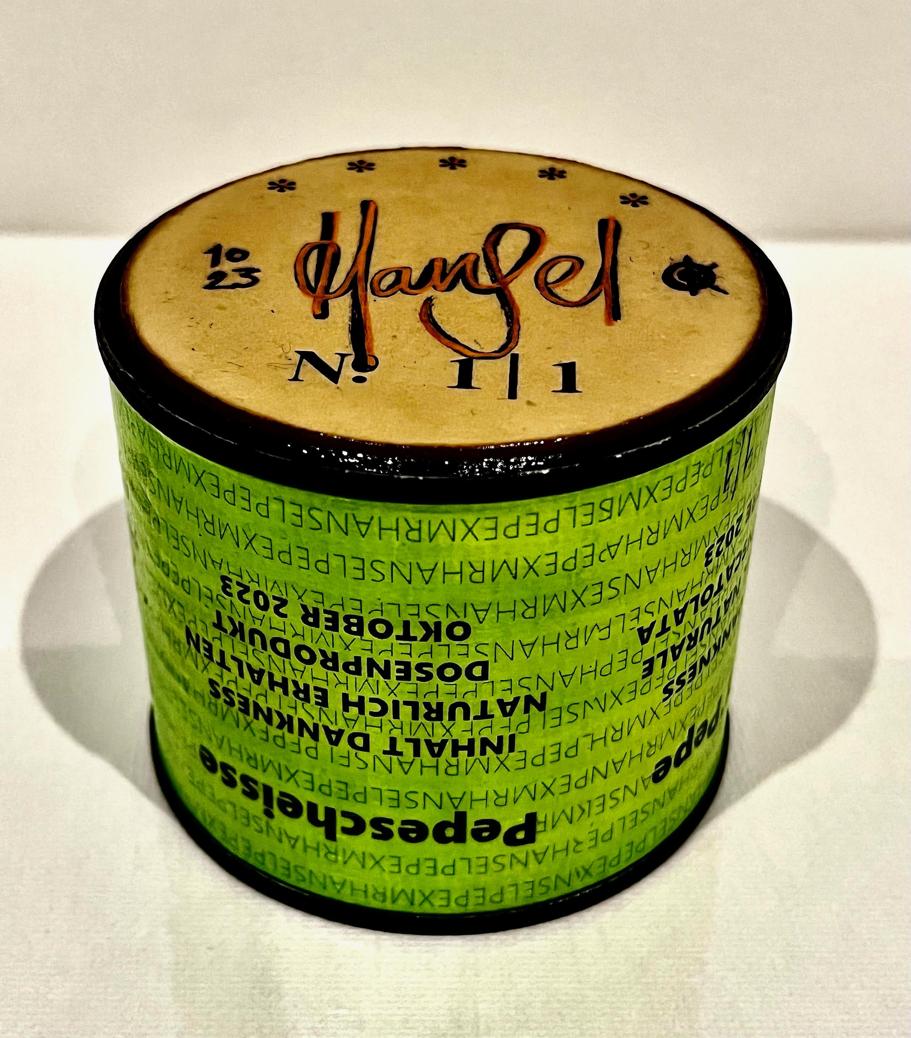 1/1 Sculpture. Reconstituted Tin Can, printed Label, tinned dankness.