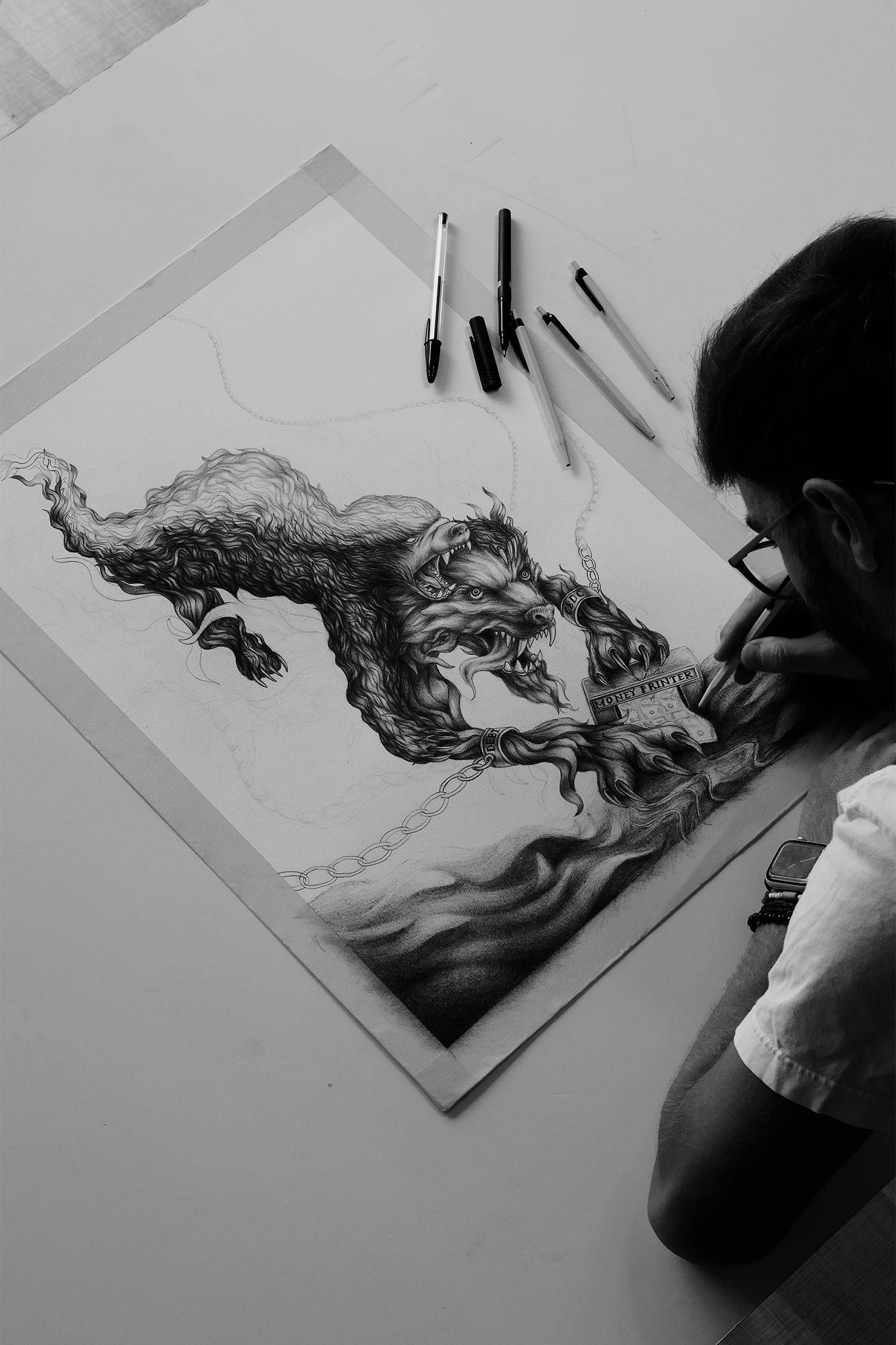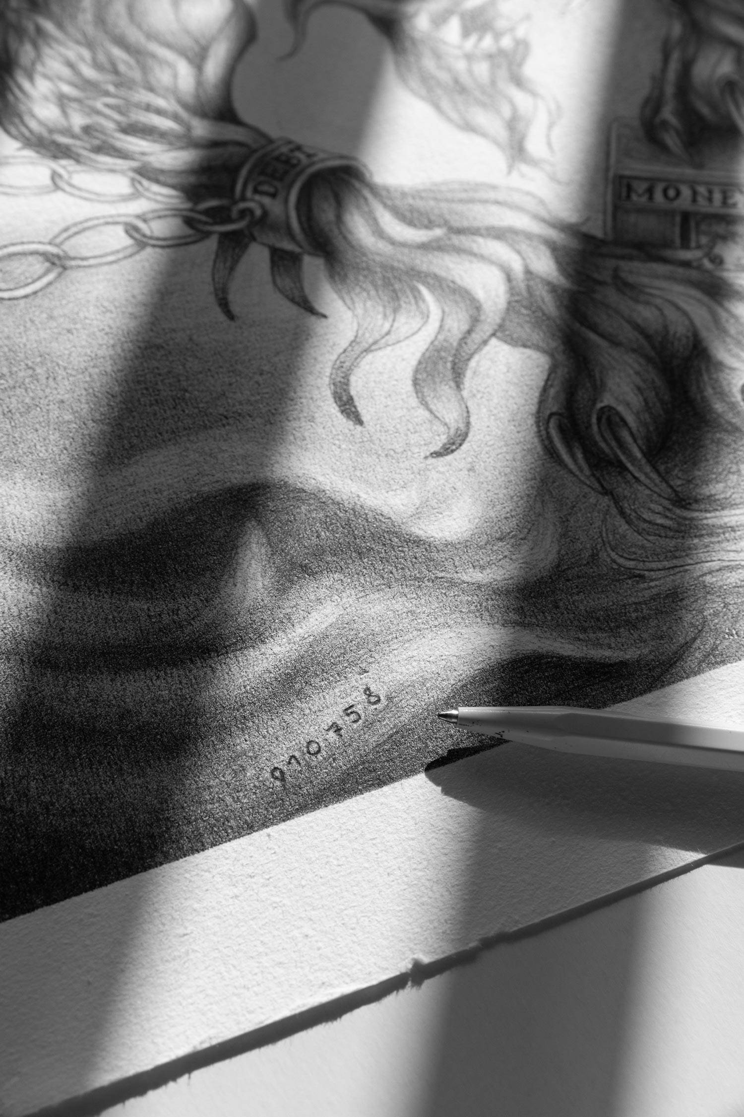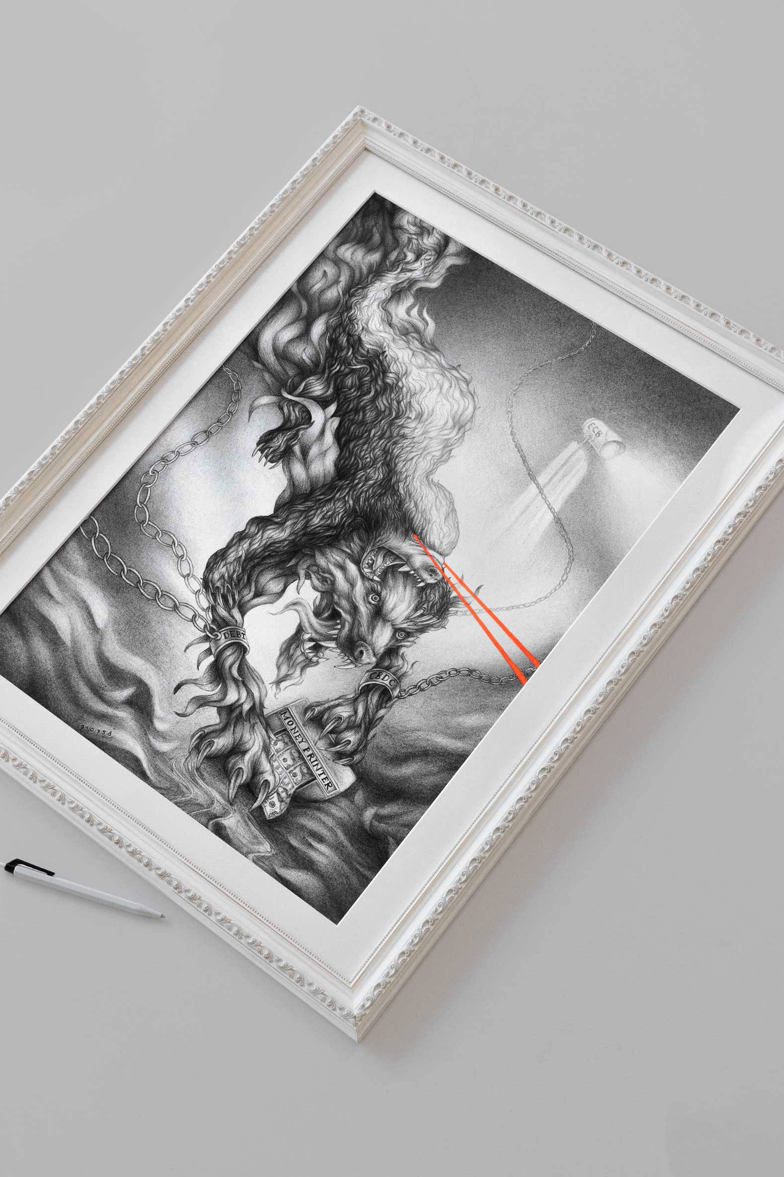 This artwork was created entirely with a ballpoint pen. You’re bidding for the original artwork in its size in 45x60cm - with the frame.