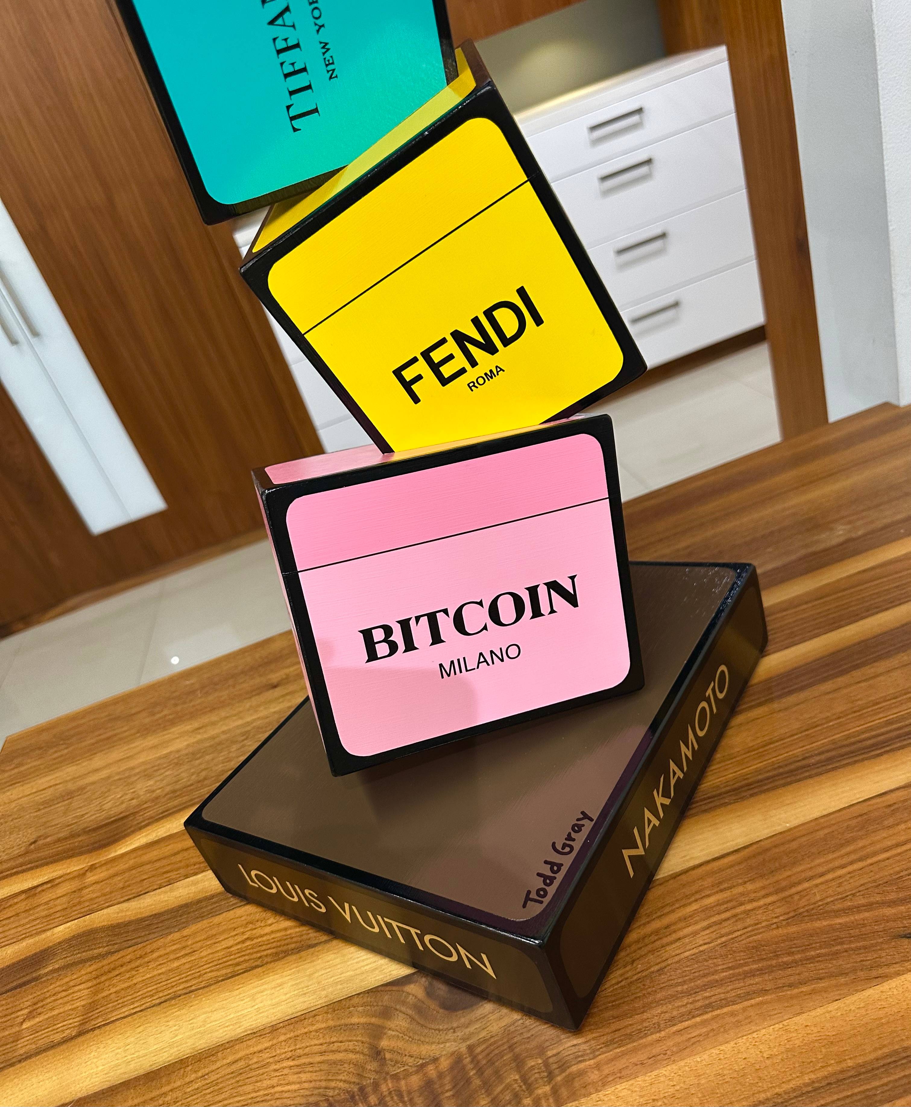 Bitcoin-Luxury table pedestal. Acrylic on wood. Gallery retail value of $6500.
