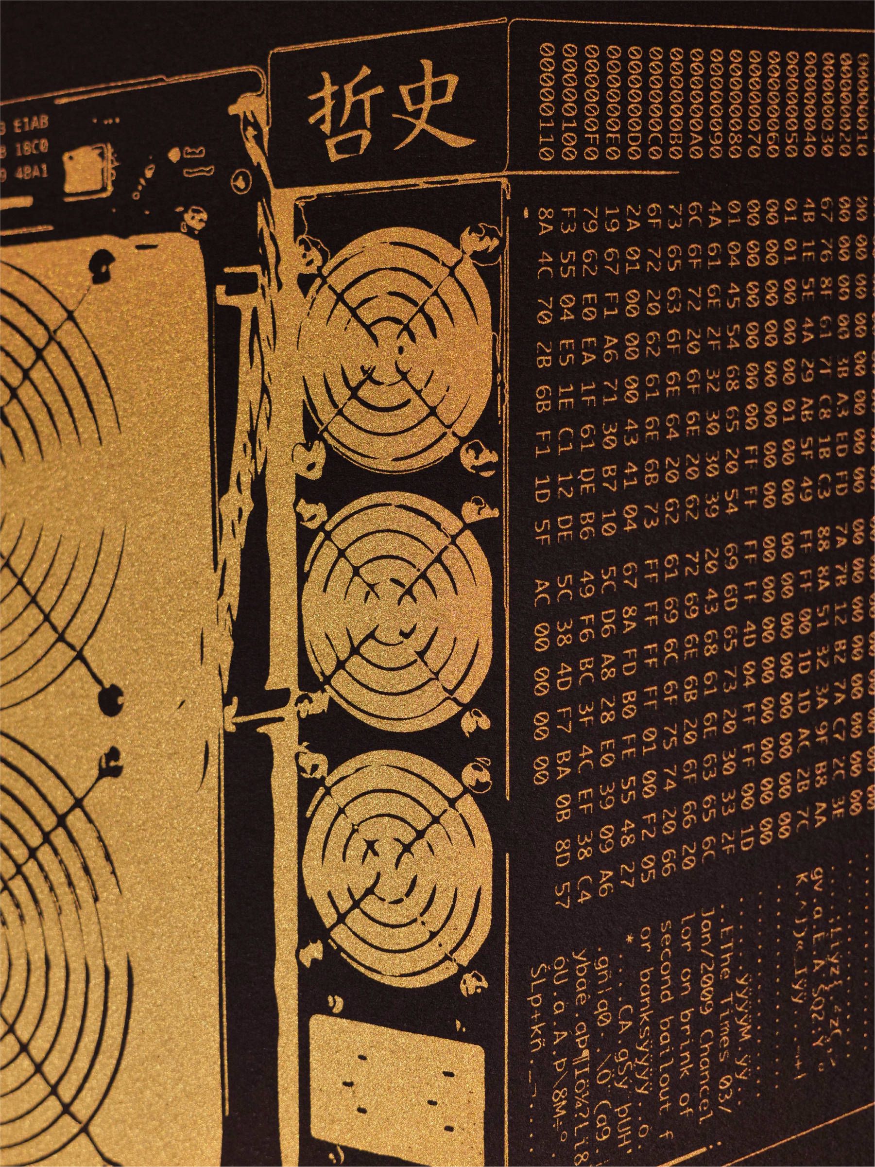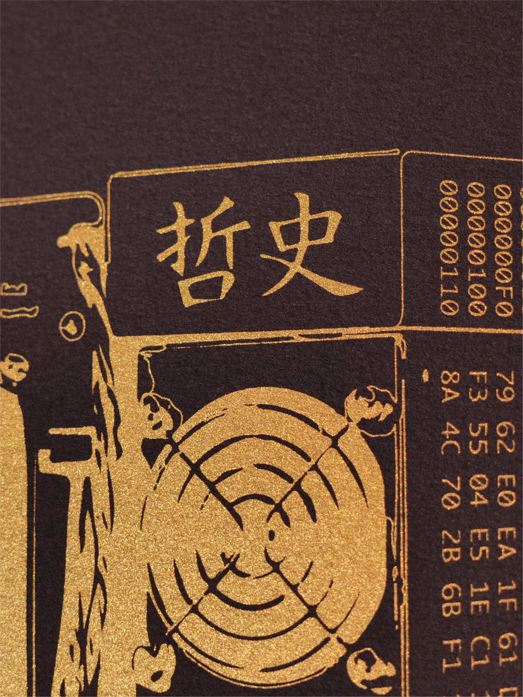 12” x 16” Fine art archival serigraph, metallic gold ink, archival paper stock.