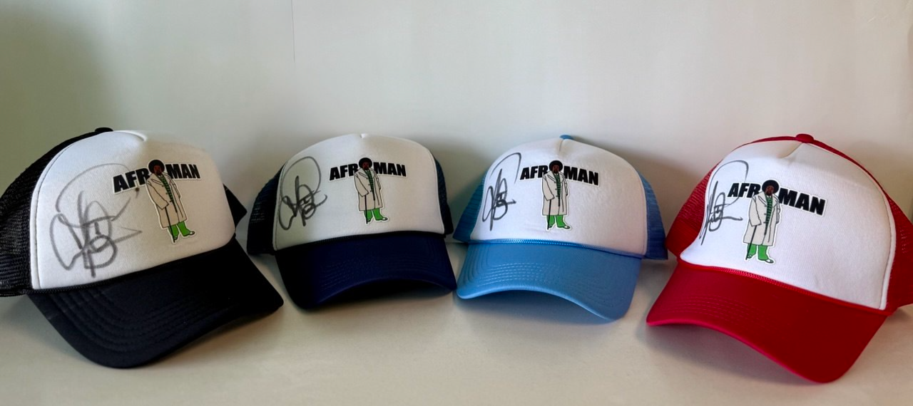 Officially licensed, hand-signed trucker hats to celebrate Afroman’s recent win.