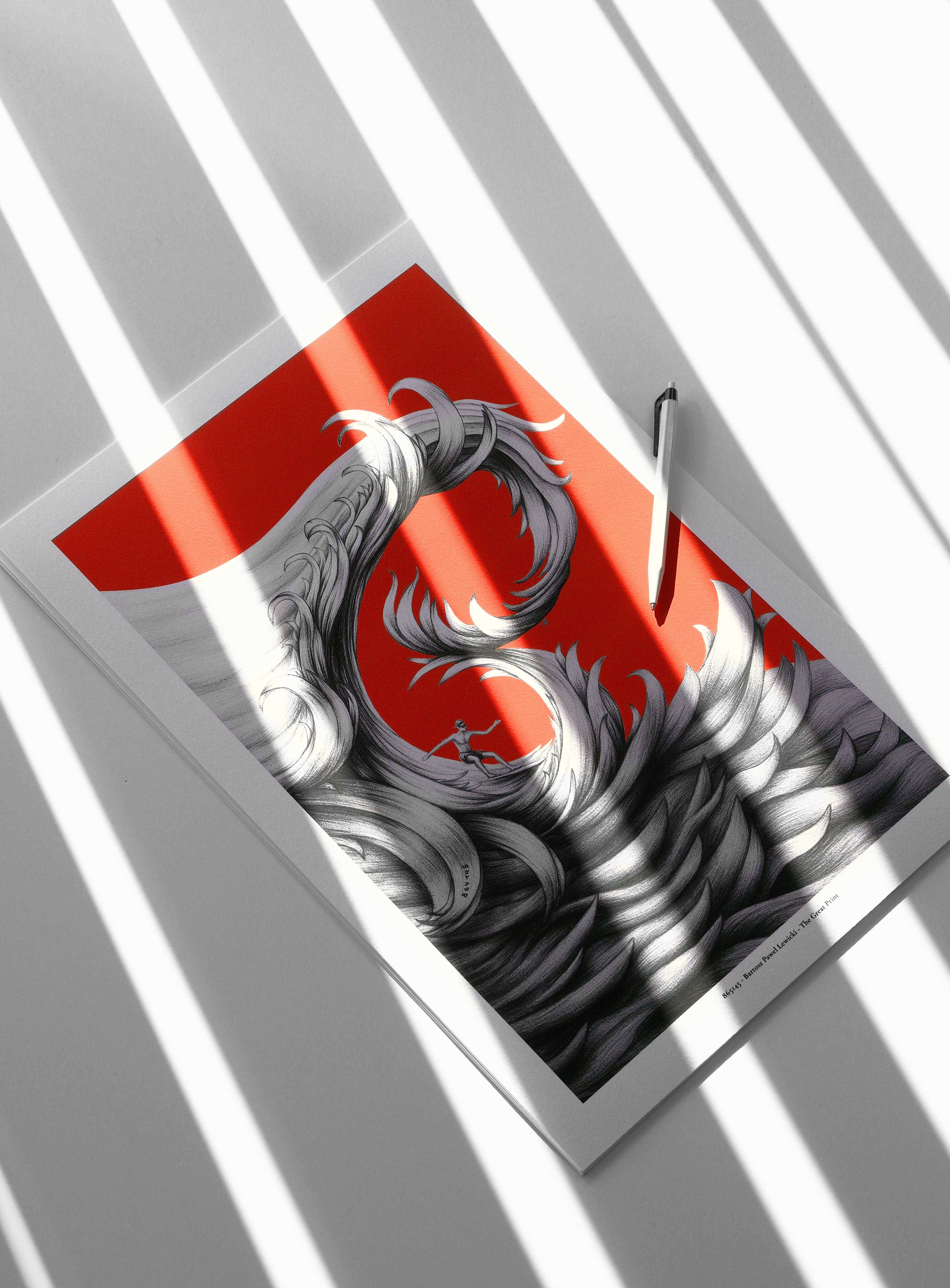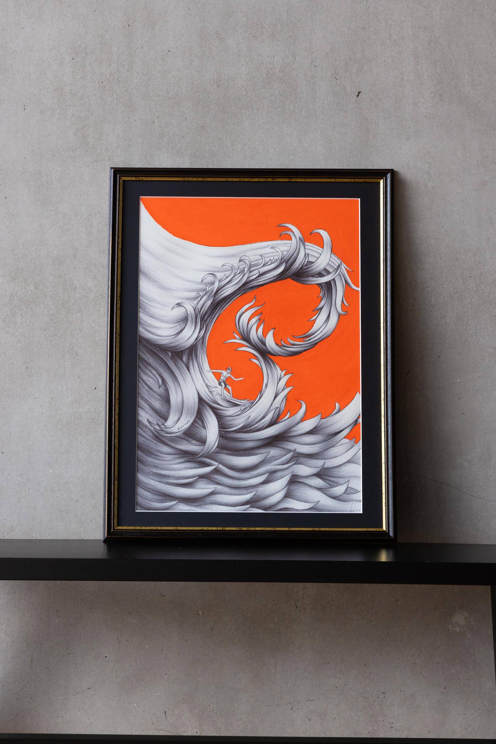 Bitcoin is the wave of our time. The wave, a powerful and majestic symbol, represents Bitcoin's growing dominance over the outdated financial system. The first wave has already hit, but a much larger one is still on the horizon. As Bitcoin evolves into the global standard, its blockchain will become the foundation for all digital information. The waves of adaptation are inevitable. I am certain of this. This artwork draws inspiration from the iconic engraving, The Great Wave off Kanagawa (神奈川沖浪裏, Kanagawa oki nami ura), by the renowned Japanese artist Katsushika Hokusai.